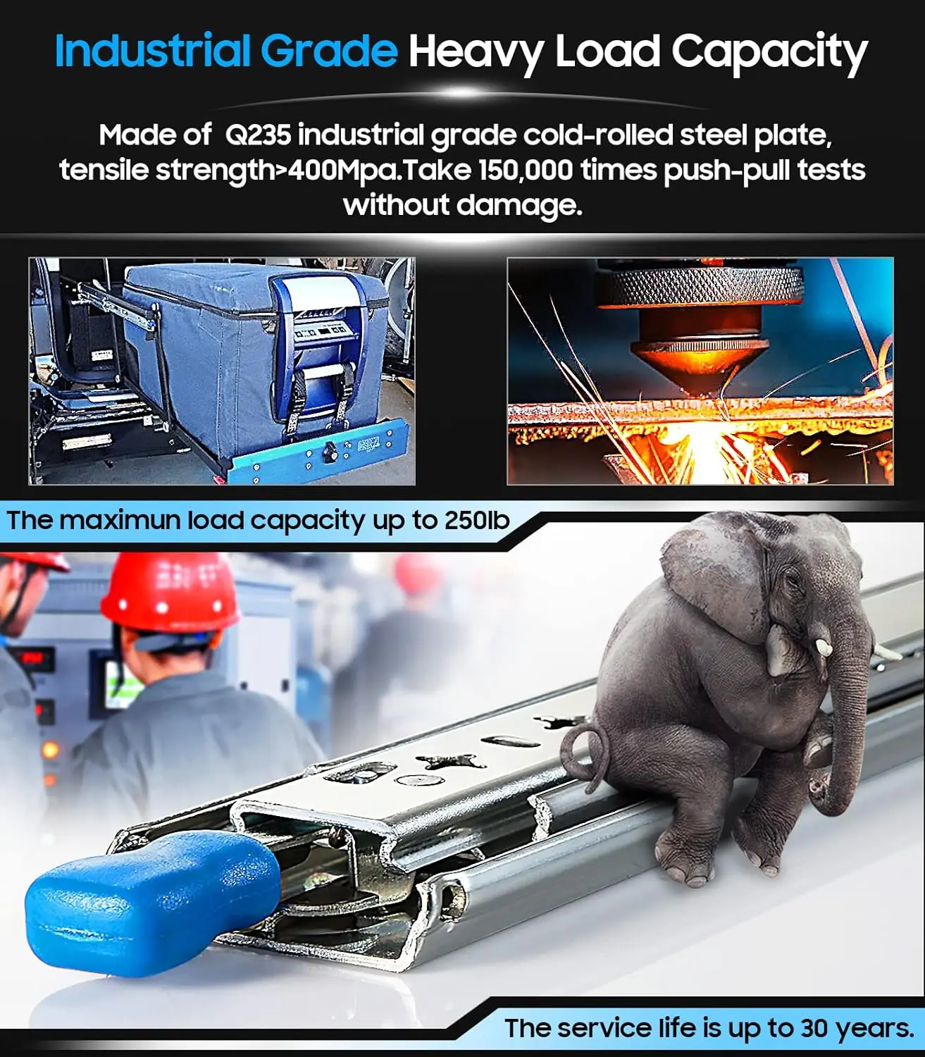 Achetez maintenant chez VEVOR. Le roulement à billes à double rangée assure un glissement en douceur lors de la fermeture et de l'ouverture des tiroirs Il peut être utilisé dans les étagères, les armoires, les tiroirs industriels, les camping-cars, les camions, les distributeurs automatiques et plus encore VEVOR Glissière Tiroir Charge Lourde De 500 Livres Glissière Télescopique Extension Glissières Pour Tiroirs Industriels Avec Verrou Coulissant Roulement à Billes Et Silencieux (24pouce/60.96cm) Blanc Achetez Glissière de tiroir à extension complète, 914 mm, coulisse de tiroir verrouillable, 1 paire, capacité de charge 226,8 kg, rail coulissant à montage latéral avec roulement à billes et verrou au prix le plus bas, livraison en 2 jours, retour sous 30 jours. Achetez maintenant chez Remarque : la longueur de la glissière ne doit pas être inférieure ou égale à la profondeur du tiroir Avec une capacité de charge de 500 lb/226,8 kg, ces glissières de tiroir sont fabriquées en acier de haute qualité et sont résistantes à la rouille et à la corrosion et conçues pour durer, répondant à tous vos besoins de charge Glissières de verrouillage douces et silencieuses : ces glissières sont dotées d'une conception de verrouillage et de verrouillage facile à contrôler. Contrairement aux glissières sans verrou ou avec un seul verrou, notre conception de verrouillage offre une sécurité et une stabilité accrues. La finition galvanisée rend les glissières de tiroir télescopiques résistantes à la rouille et à l'usure pour une utilisation longue durée. Conception de verrouillage sécurisé : les glissières de tiroir de commode à extension complète sont équipées d'une conception de verrouillage qui verrouille les glissières d'une simple pression, assurant que vos articles sont sécurisés et ne glisseront pas même sur des routes cahoteuses VEVOR Glissiere De Tiroir A Extension Complete, 1 Paire Coulisse De Tiroir Verrouillable 950 Mm Capacite De Charge 1134 Kg Rail Coulissant A Montage Lateral Avec Roulement A Billes Et Verrou 88676822 Ils fonctionnent avec un ajustement approprié et un faible bruit. Grâce à sa conception à extension complète à 3 volets, vous pouvez atteindre l'ensemble du tiroir. Veuillez consulter les images pour une description détaillée de chaque taille lors du choix. Fabriqués en acier de haute qualité, ces rails coulissants pour tiroirs ont une dureté élevée, une grande stabilité et une grande durabilité.